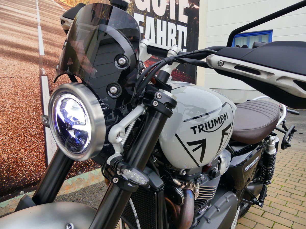 Zum Verkauf steht eine sehr gepflegte Triumph Scrambler 1200 X aus erster Hand mit wenig Kilometern und viel hochwertigem Zubehör. Das Motorrad befindet sich in perfektem Zustand - keine Kratzer oder Beschädigungen. Scheckheftgepflegt, letzter Service am 21.05.2025 bei 938 km.